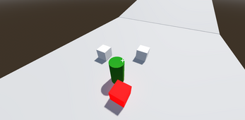Prosta "gra" stworzona w Godot Engine z użyciem RigidBody3D i CharacterBody3D (Zielony Cylinder na obrazku to stary gracz ale teraz jest kapsułą)